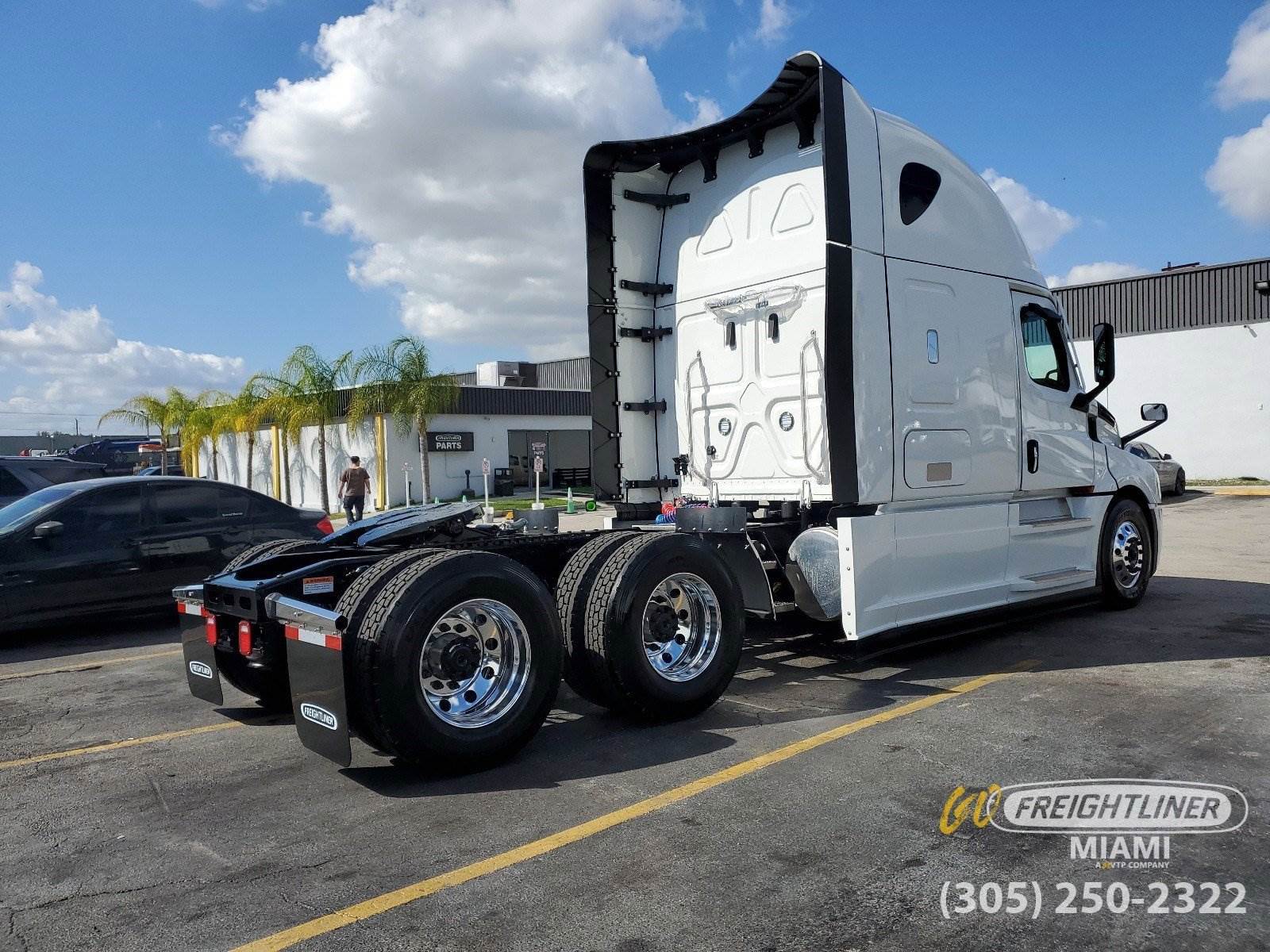 *2027 Freightliner Cascadia 126 Sleeper -- Detroit Diesel -- DT12 Overdrive** Detroit DD15 14.8L Diesel -- 505 HP / 1650 lb.-ft Torque* DT12 Overdrive Automated Manual Transmission* Dual 120-Gallon Fuel Tanks & 23-Gallon DEF Tank* 13,300 lb. Front / 40,000 lb. Rear Axle -- 3.08 Ratio -- Tandem Axle -- 239 Wheelbase* Detroit Fuel/Water Separator -- 12V Pre-Heater*Sleeper / Cab** 72 Raised Roof Sleeper* 40 Lower Bunk & Foldable Upper Bunk* Gen 3 ESPAR AM3 Heater and Easystart Pro Controller* Auxiliary HVAC w/ Constant Temp Control* Built-In Refrigerator, Microwave Shelf w/ Storage* Flat Screen TV Mount w/ Antenna* Elite 2.0 Leather Air Suspension Driver Seat* Premium Leather 2.0 Passenger Seat*Exterior / Interior** White Exterior* Black Laredo Leather Seats* Saddle Tan Up-Level Interior*Technology & Comfort** 7 Touchscreen AM/FM/WB Radio -- SiriusXM, Bluetooth, Apple CarPlay & Android Auto* USB / AUX Inputs, 12V Outlets* AC, Heater & Defroster*Additional Features** Heated Power Mirrors* Hood-Mounted Mirrors* Polished Aluminum Front & Rear Wheels* 24 Air Slide Fifth Wheel* Remote Keyless Entry* Eaton 1800 Watt Pure Sine Wave* 120V Cab Wiring & AC Outlet w/ Shore Power* LED Fog Lights