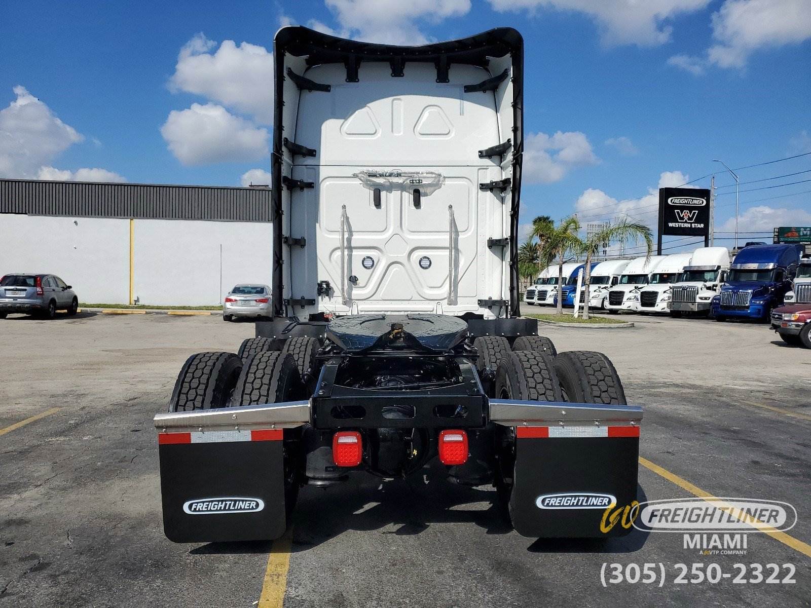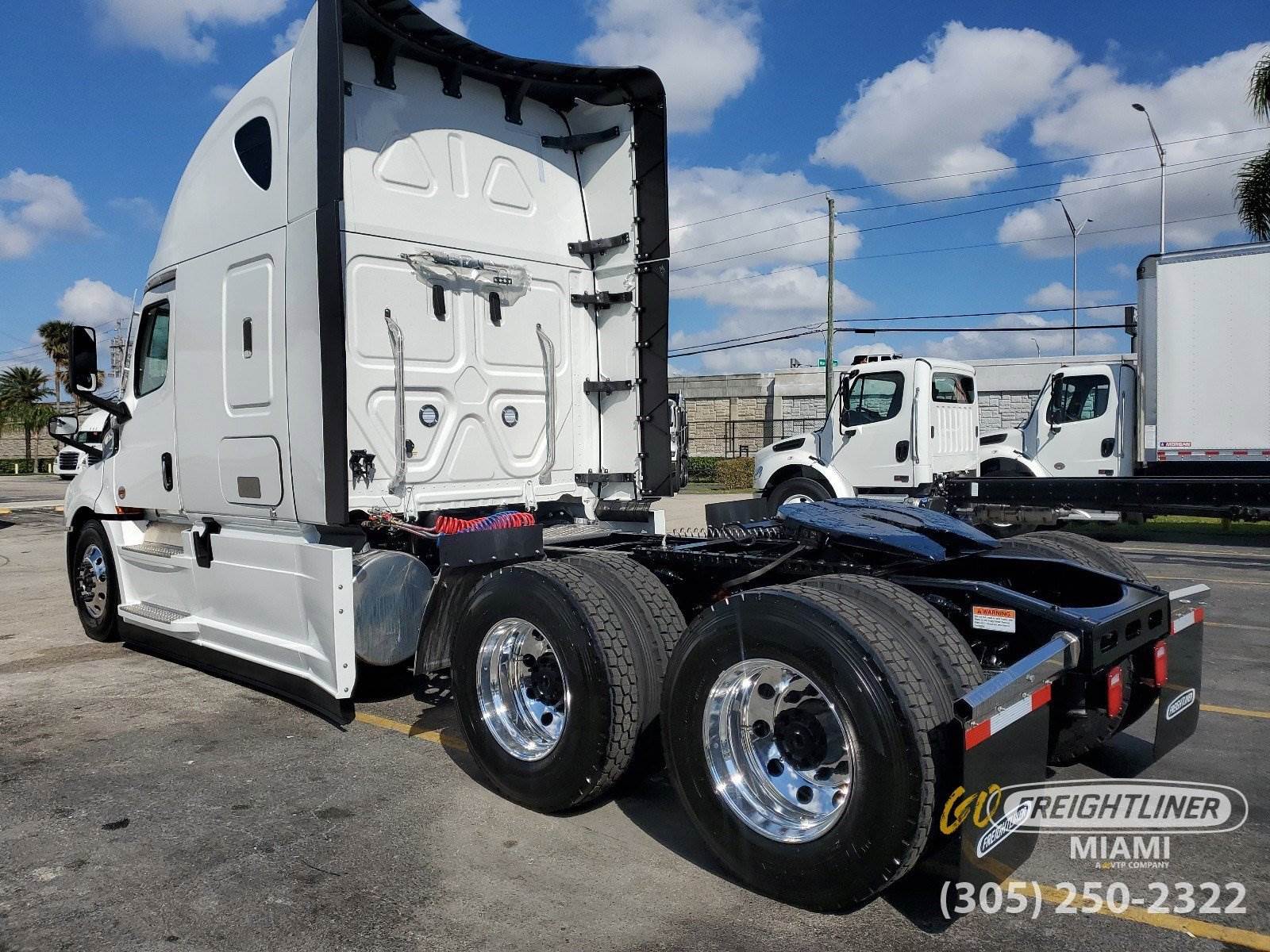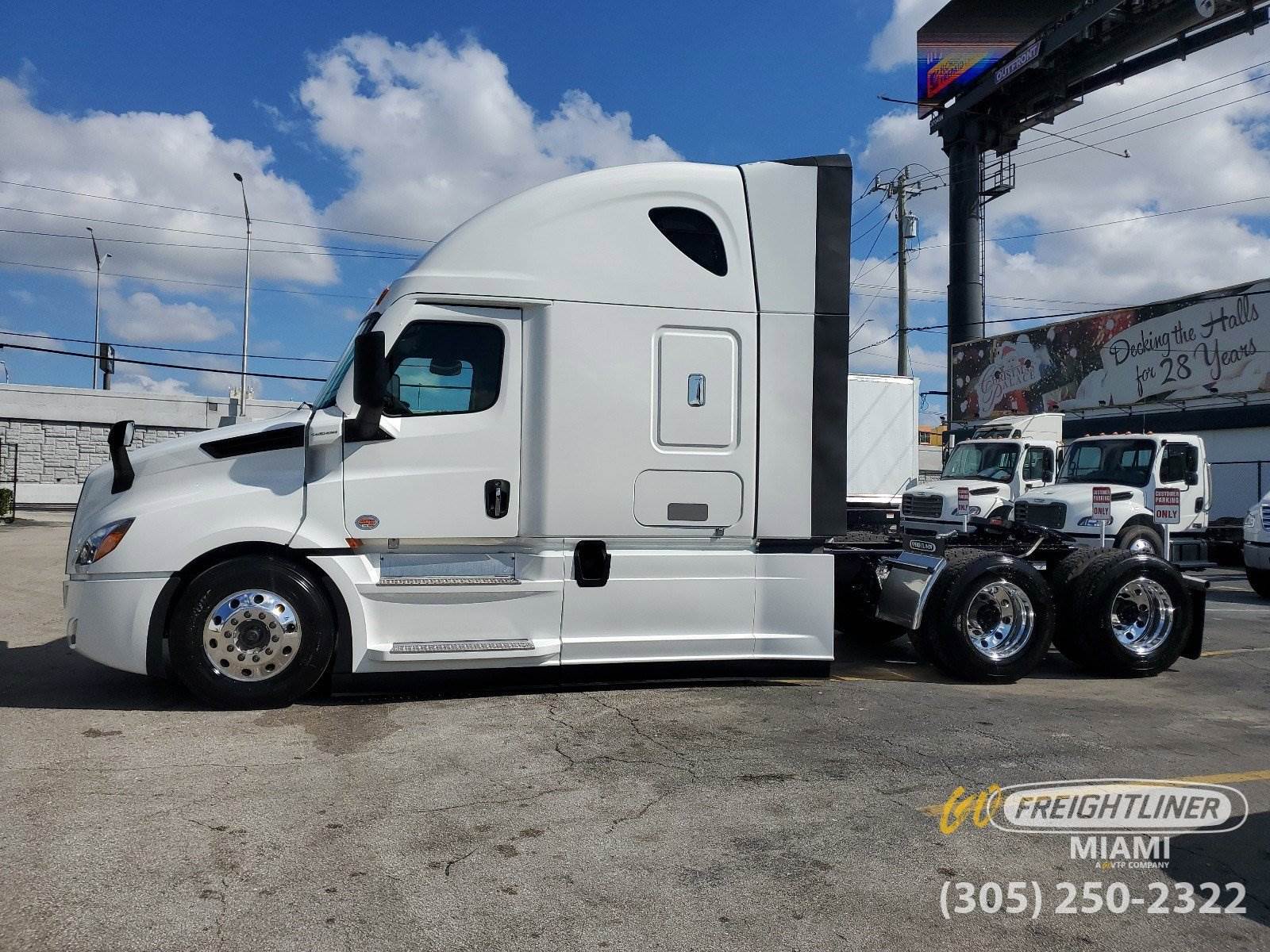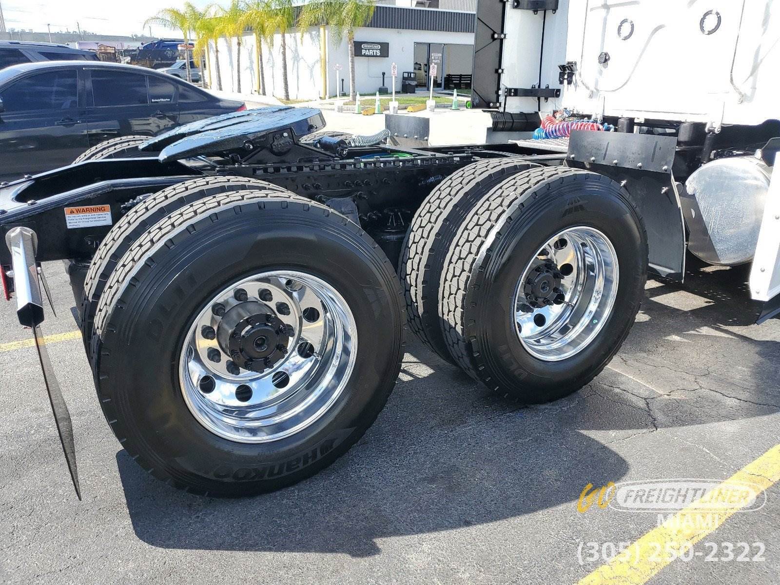 *2027 Freightliner Cascadia 126 Sleeper** Detroit DD15 14.8L Diesel -- 505 HP / 1650 lb.-ft Torque* DT12 Overdrive Automated Manual Transmission* Dual 120-Gallon Fuel Tanks & 23-Gallon DEF Tank* 13,300 lb. Front / 40,000 lb. Rear Axle -- 3.08 Ratio -- Tandem Axle -- 239 Wheelbase* Detroit Fuel/Water Separator -- 12V Pre-Heater*Sleeper / Cab** 72 Raised Roof Sleeper* 40 Lower Bunk & Foldable Upper Bunk* Gen 3 ESPAR AM3 Heater and Easystart Pro Controller* Auxiliary HVAC w/ Constant Temp Control* Built-In Refrigerator, Microwave Shelf w/ Storage* Flat Screen TV Mount w/ Antenna* Elite 2.0 Leather Air Suspension Driver Seat* Premium Leather 2.0 Passenger Seat*Exterior / Interior** White Exterior* Black Laredo Leather Seats* Saddle Tan Up-Level Interior*Technology & Comfort** 7 Touchscreen AM/FM/WB Radio -- SiriusXM, Bluetooth, Apple CarPlay & Android Auto* USB / AUX Inputs, 12V Outlets* AC, Heater & Defroster*Additional Features** Heated Power Mirrors* Hood-Mounted Mirrors* Polished Aluminum Front & Rear Wheels* 24 Air Slide Fifth Wheel* Remote Keyless Entry* Eaton 1800 Watt Pure Sine Wave* 120V Cab Wiring & AC Outlet w/ Shore Power* LED Fog Lights